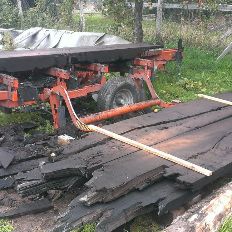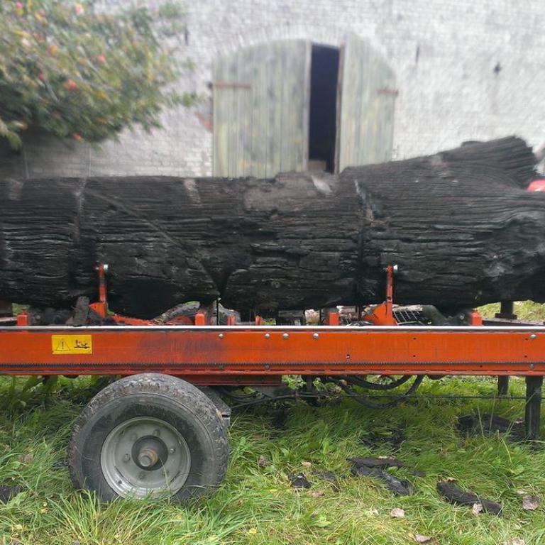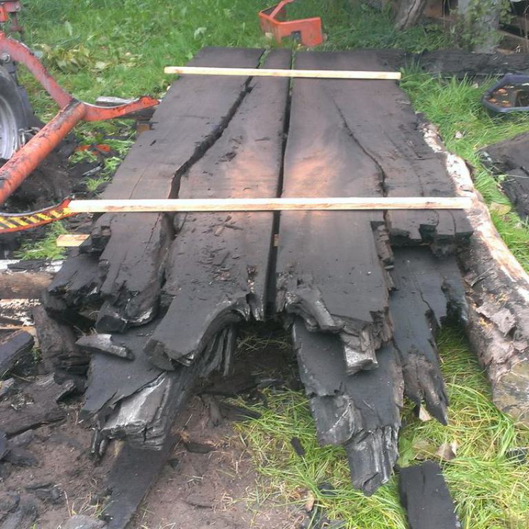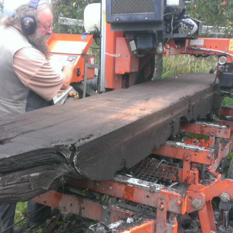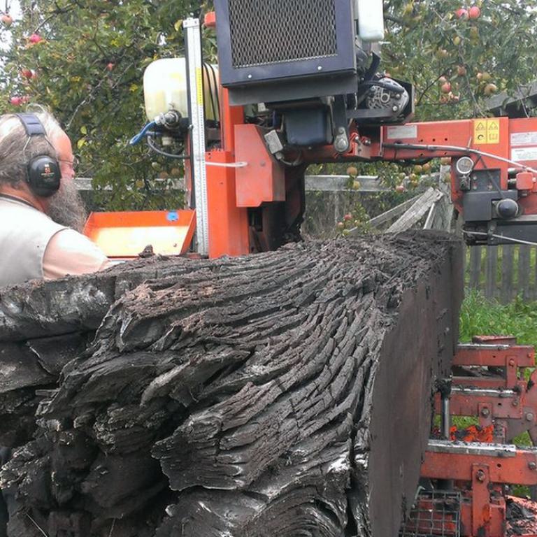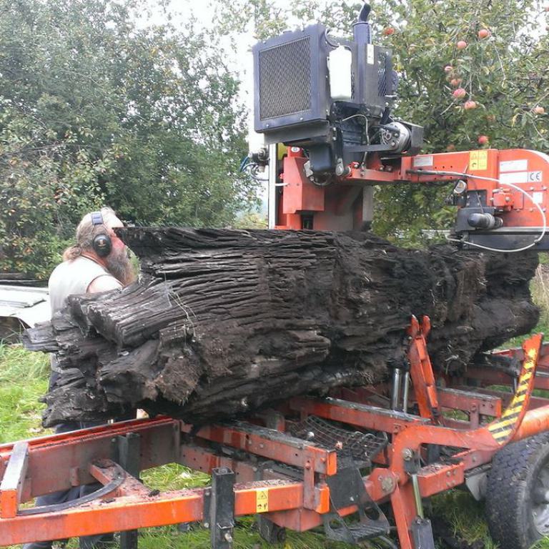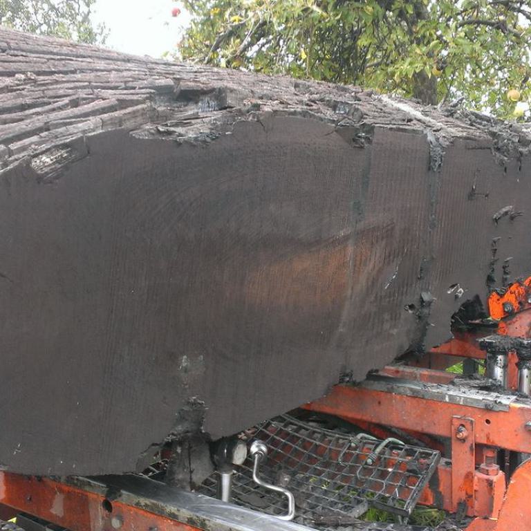 Diese habe ich jetzt aufsägen lassen um später einmal etwas schönes aus den 8cm starken, rabenschwarzen Eichenbohlen zu bauen ;-)