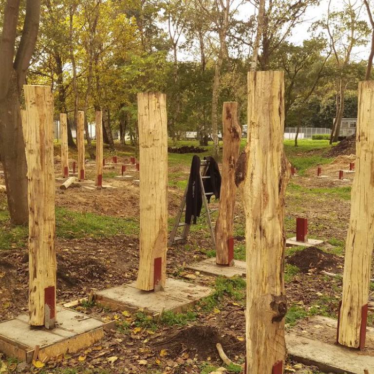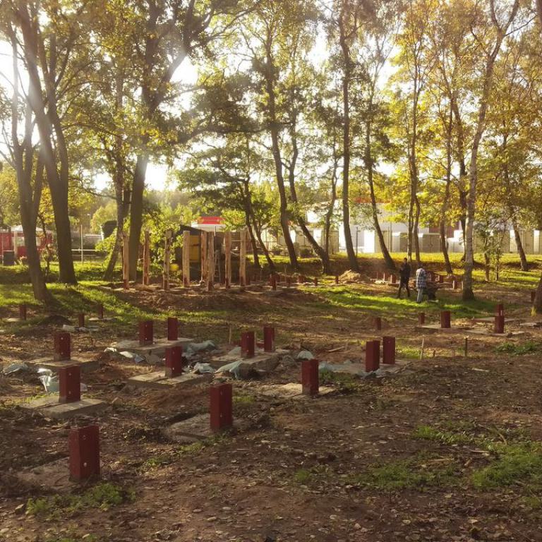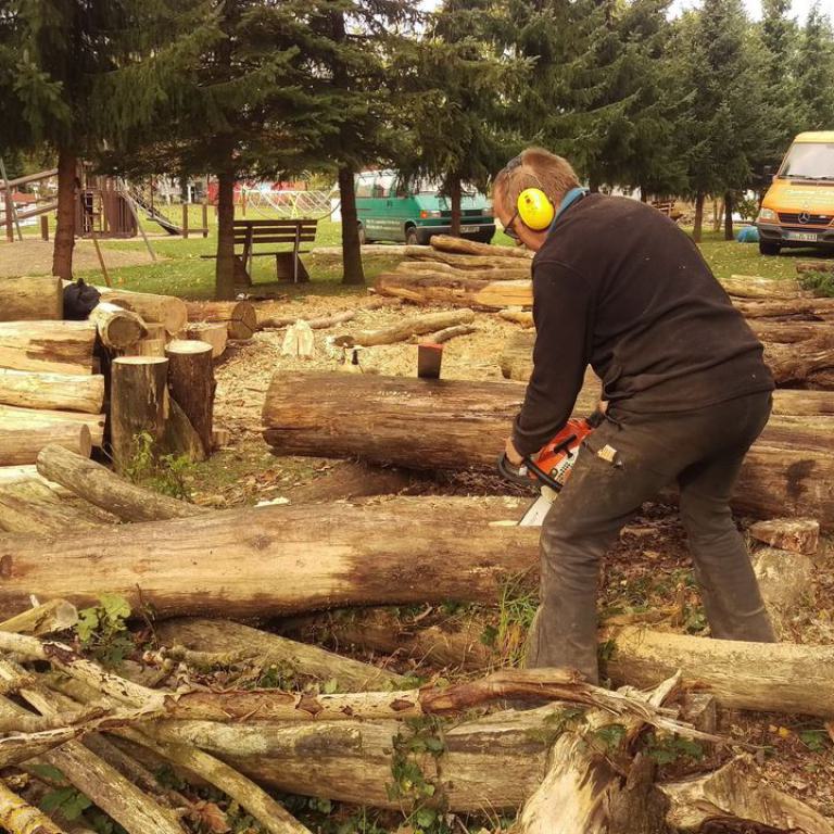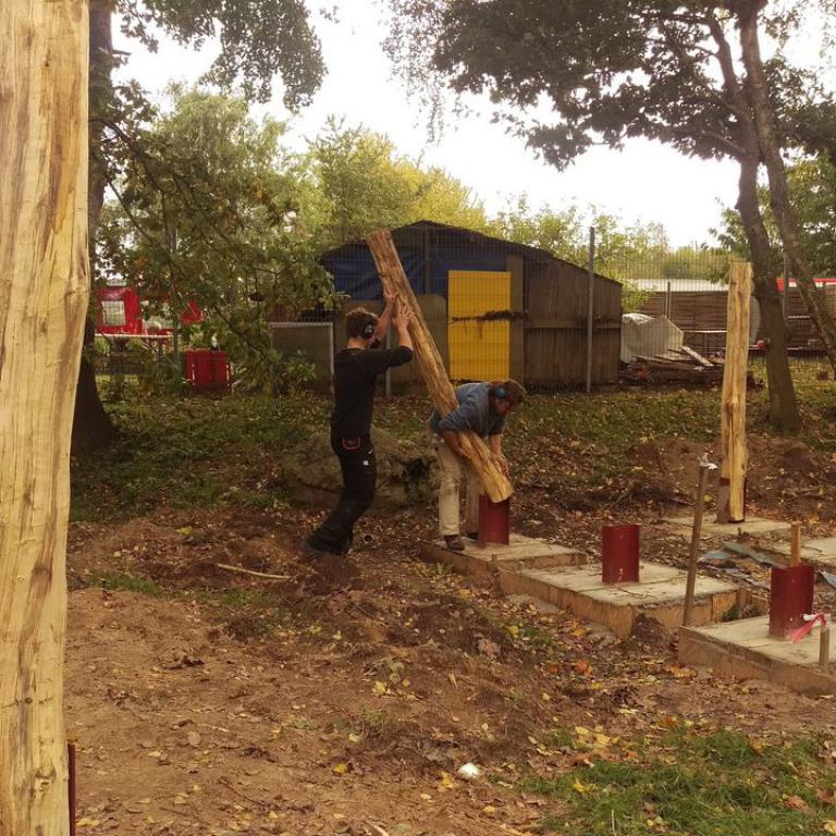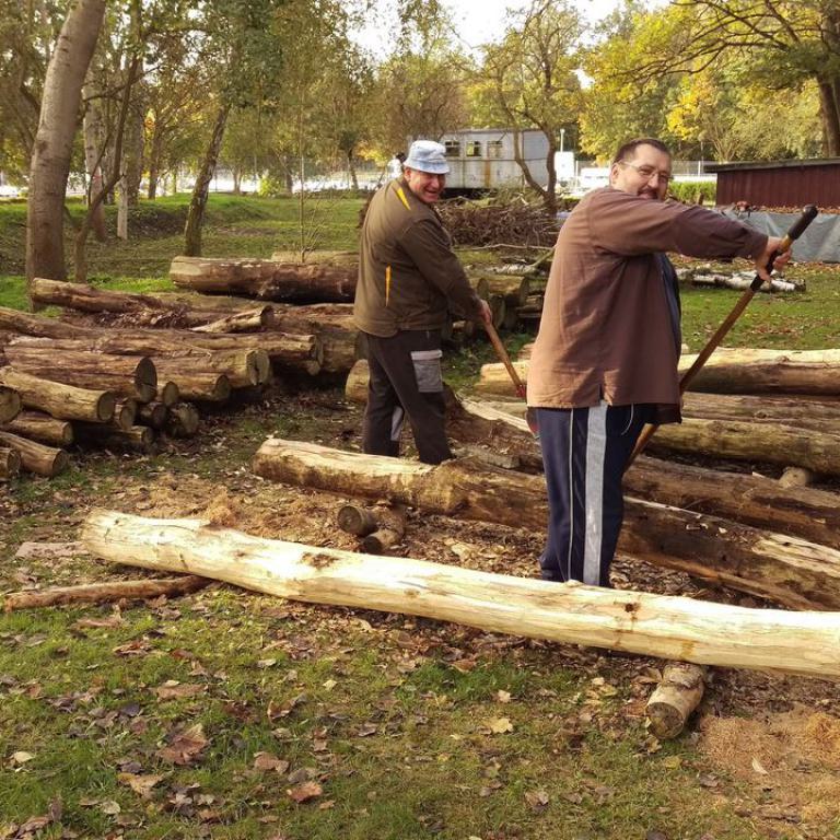 Wir haben mit den Arbeiten am Walddorf Bützow, einem kleinen Pfahldorf aus Eichenstämmen mit Wohn-und Schlafhütten, einem Gemeinschaftshaus und einem alle Hütten verbindendem Hochweg für eine sicher tolle Ferienzeit für die Kinder der Umgebung auf dem Gelände der Miniaturstadt Bützow begonnen :-) ....auch für mich eine nicht alltägliche Arbeit :-).