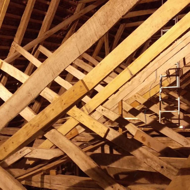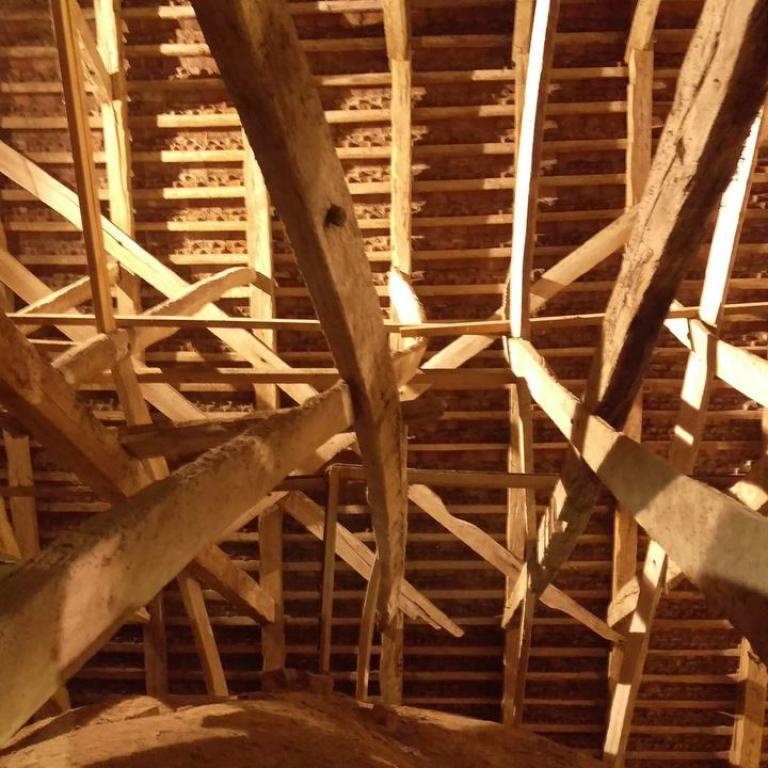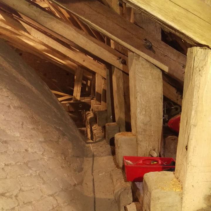 ...und das noch etwas rätselhafte mittelalterliche Dach der Bernitter Dorfkirche ist jetzt auch endlich für mich zur vorübergehenden "Zweitwohnung" geworden und hat sich schon gleich in mein Herz geschlichen :-)....hier werde ich den Winter über wohl viel Freude beim reparieren haben!