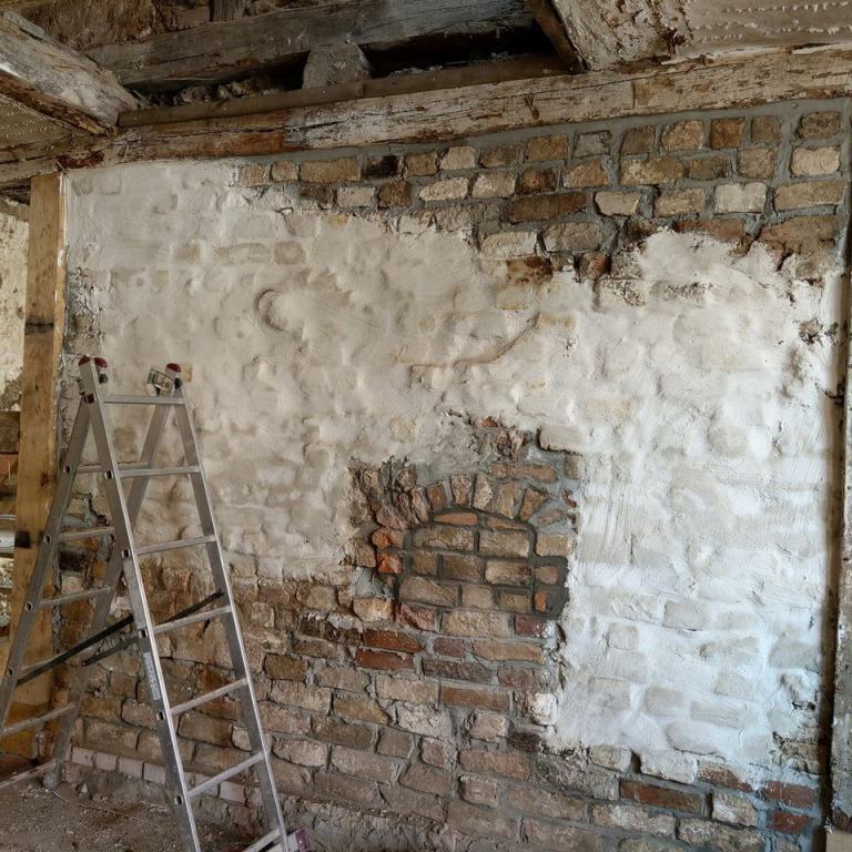 Leider befanden sich beide Gebäude nach 30 Jahren Leerstand in einem erbärmlichen Zustand, so das ich bei meiner ersten Besichtigung einige Zweifel an einer denkmalgerechten Sanierung hatte (und das will schon was heißen ;-))....aber nach einer Woche Zweifel war ich wieder in meinem Element und konnte die Arbeit wieder "leben" und "lieben" :-)))