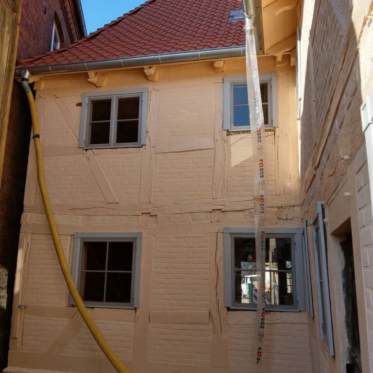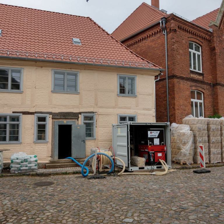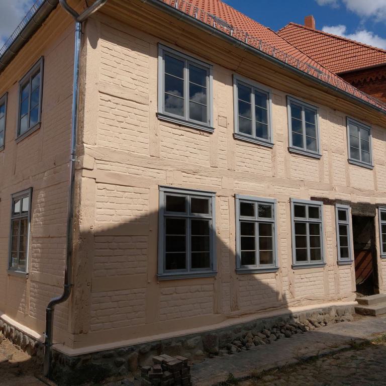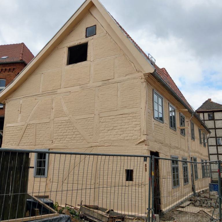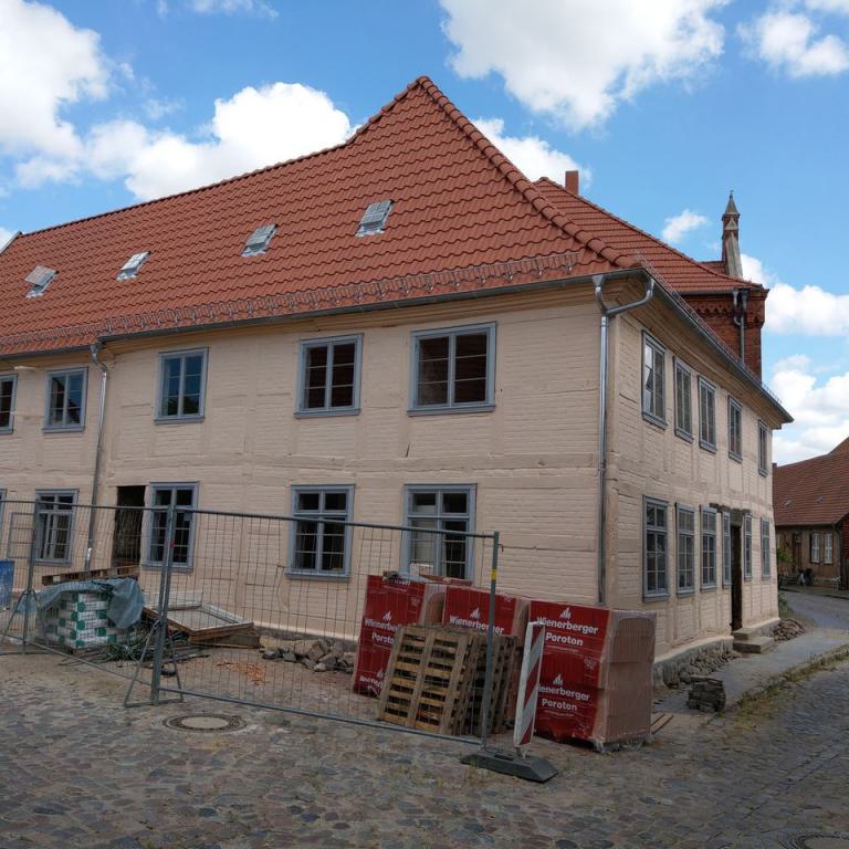 Es ist die Sanierung des Ratsarmenhaus der Stadt Bützow - ein für die Stadt kulturhistorisch sehr bedeutsames Gebäude. Es handelt sich hierbei um ein Fachwerkhaus aus dem Jahr 1736 in der Kirchenstraße (mit einem Inschriftenbalken über der Eingangstür aus dem Vorgängerbau mit der Jahreszahl 1589) und ein weiteres, kleineres Fachwerkhaus, gebaut 1737 in der 4.Wallstraße, welches direkt an das Armenhaus anschließt und dann um 1790 mittels Türdurchbrüche mit diesem verbunden wurde.